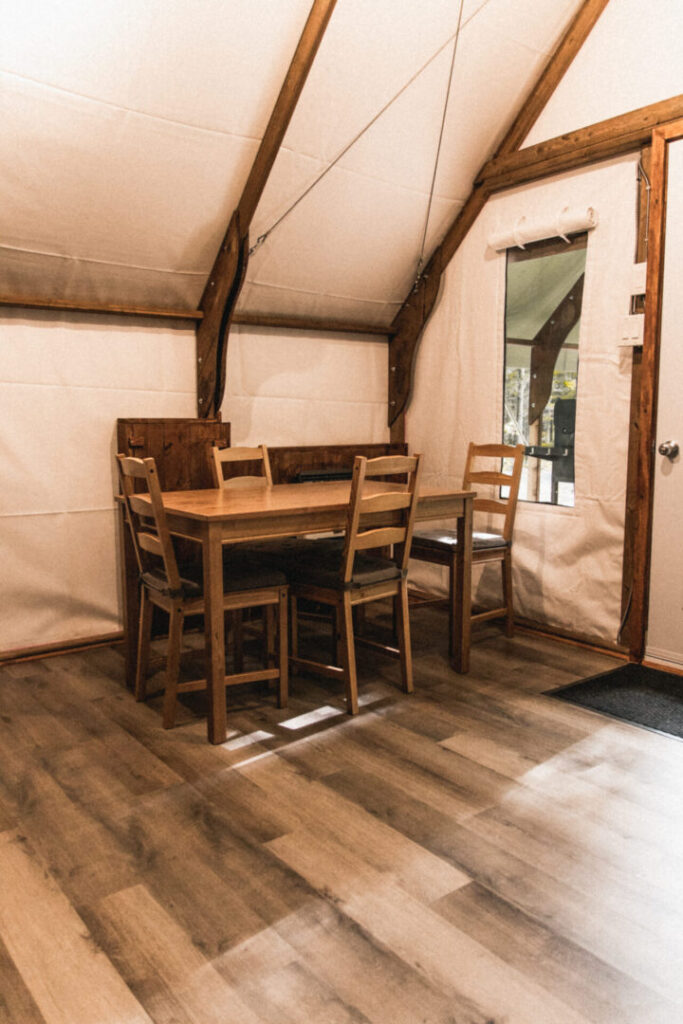 The brand-new ready-to-camp area, set back right next to reception and toilet block 3, where you’ll find La Chanterelle and La Truffe. Pets are allowed in these shelters.