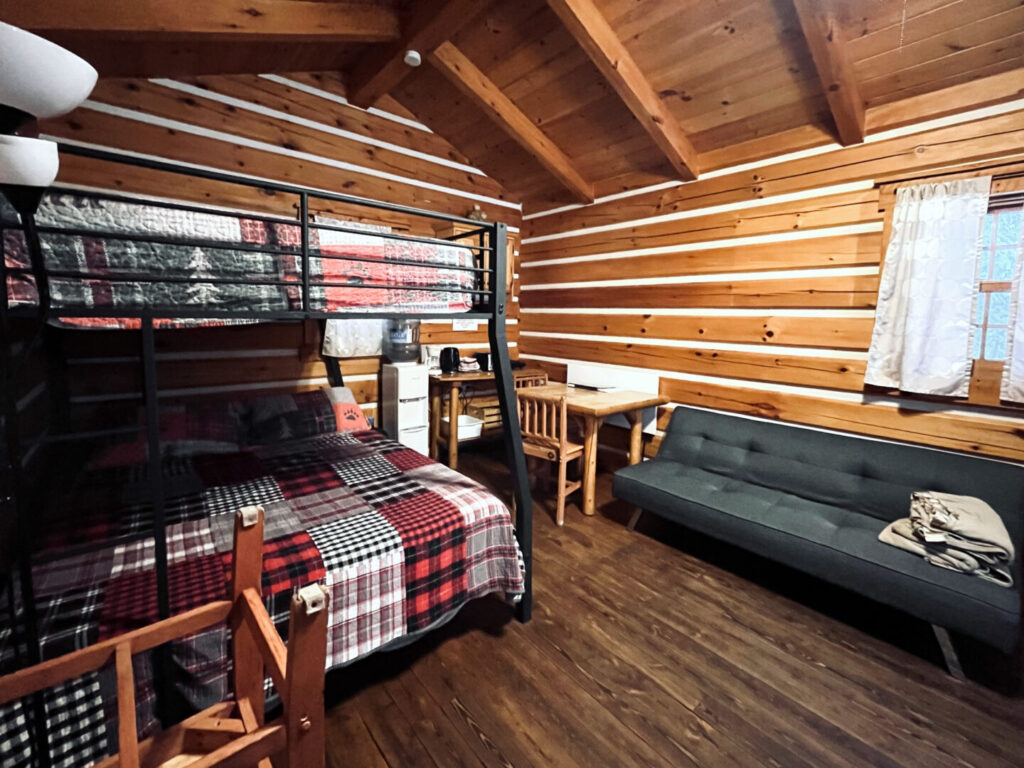 Le Rouleux est un chalet rustique de style traditionnel, idéal pour une escapade simple et authentique en nature. Il peut accueillir jusqu’à 4 personnes dans une ambiance chaleureuse, parfaite pour se retrouver après une journée passée sur les sentiers. Un choix tout indiqué pour ceux qui aiment le charme brut du plein air, été comme hiver!